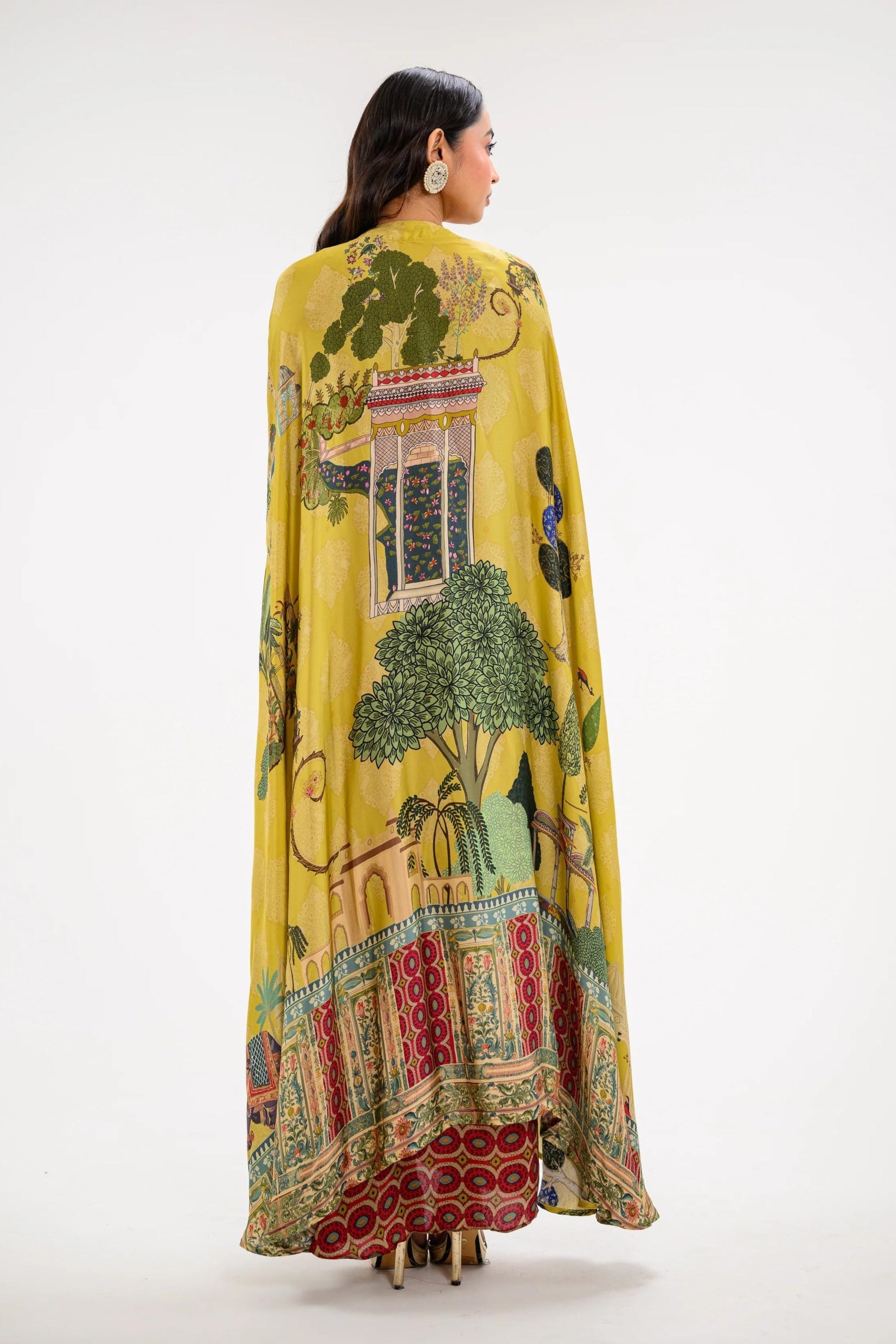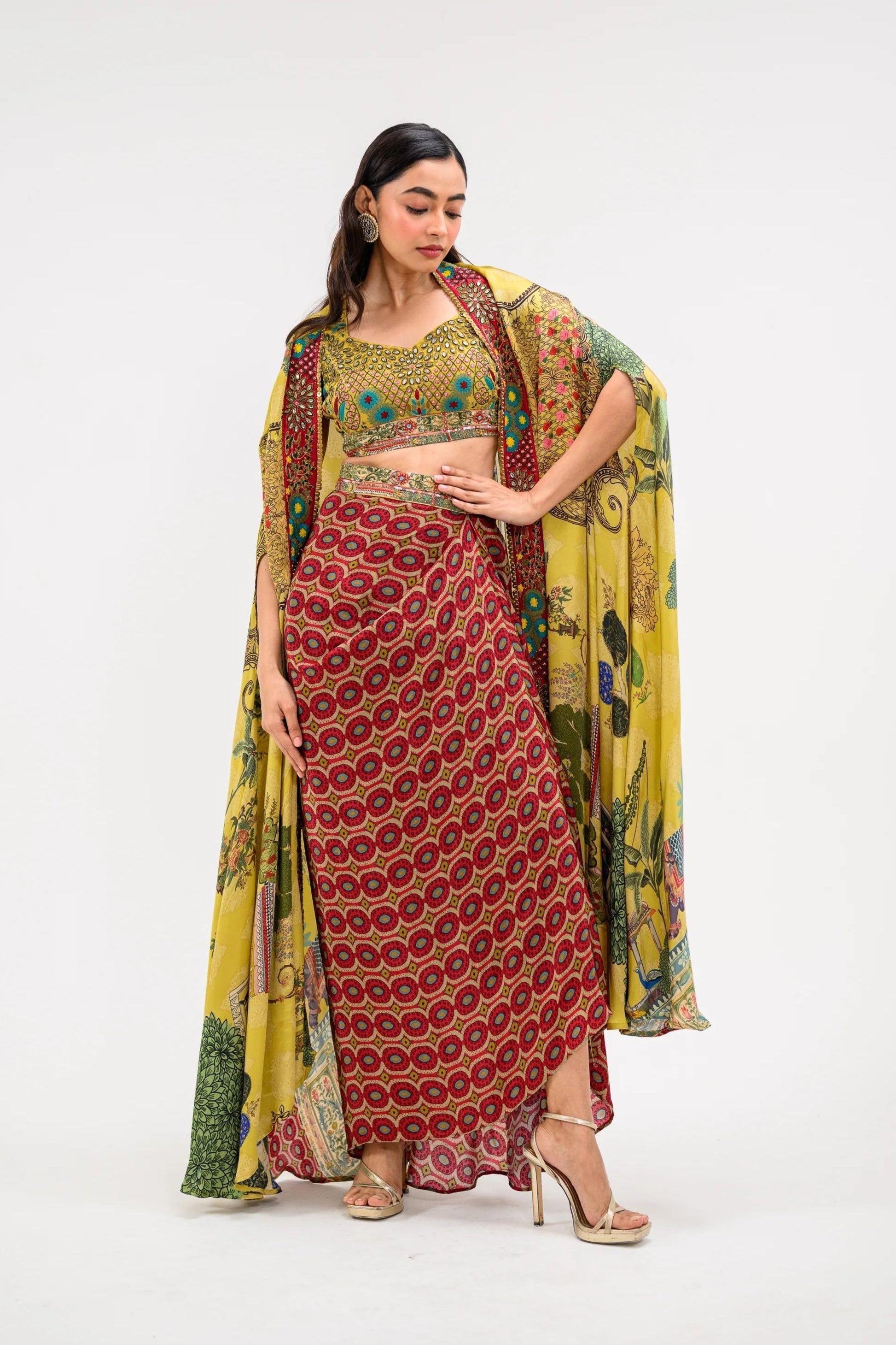 FABRIC : Malai Satin with Printed and Mirror Work.