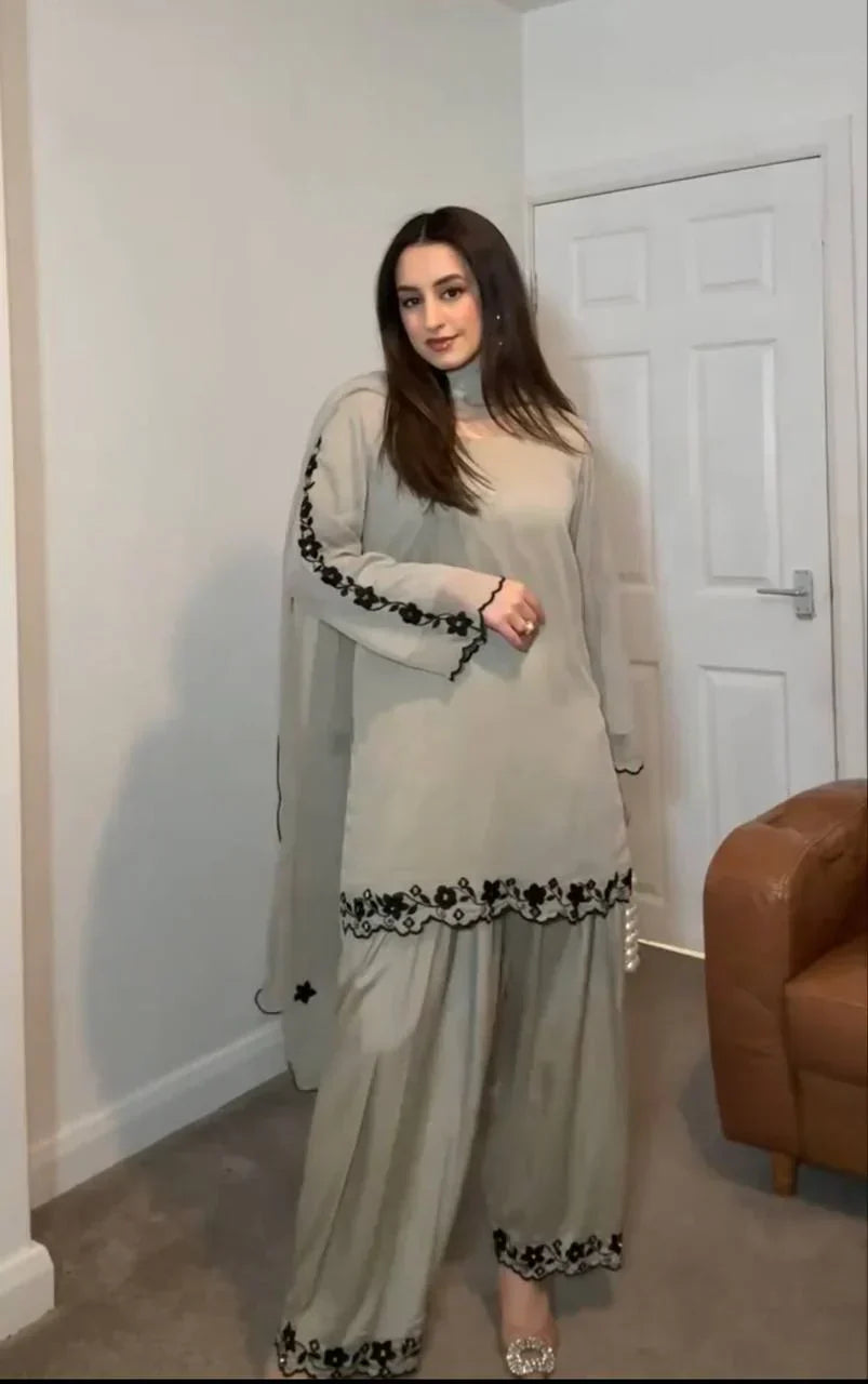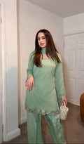 Work: Exquisite Embroidery with Mirror Detailing on Sleeves