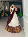 White And Maroon Color Poly Cotton Chex Navratri Special Lehenga Choli