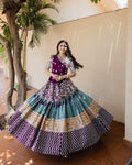 LEHENGA : Heavy Muslin Cotton with Digital Print fully stitched with canvas patta border With real mirror work (5 Meters full flair)